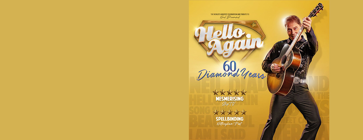 Hello Again, A Tribute to Neil Diamond tickets here at Eventim.co.uk. Sign up to the Hello Again, A Tribute to Neil Diamond Ticket Alarm to be updated with the latest shows and tours.